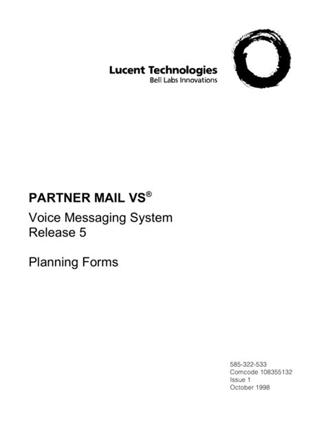 [UniqueID] - Read Online PARTNER MAIL VS Voice Messaging System Release 5 Installation ... Paperback